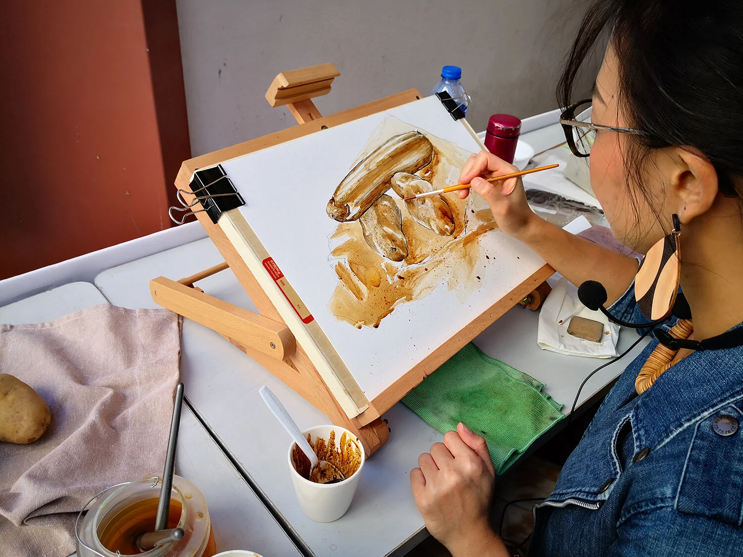 This was my first show that I added coffee liquid on my artworks. It makes the vintage look and shows the warm feeling in the local market. It represented the relationship between neighbors.